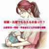 早産流産が起こった場合、それに伴う入院費用や手術費用が保障されることがあります。
